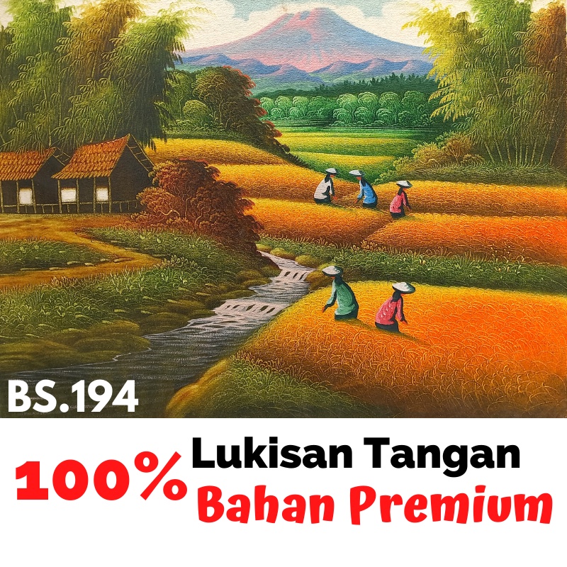 Beli lukisan pemandangan sawah/padi 85x135cm terbaru di shopee lukisan rumah kampung. Lukisan panen padi dan pemandangan terasering suasana pedesaan ubud bali yang sangat.